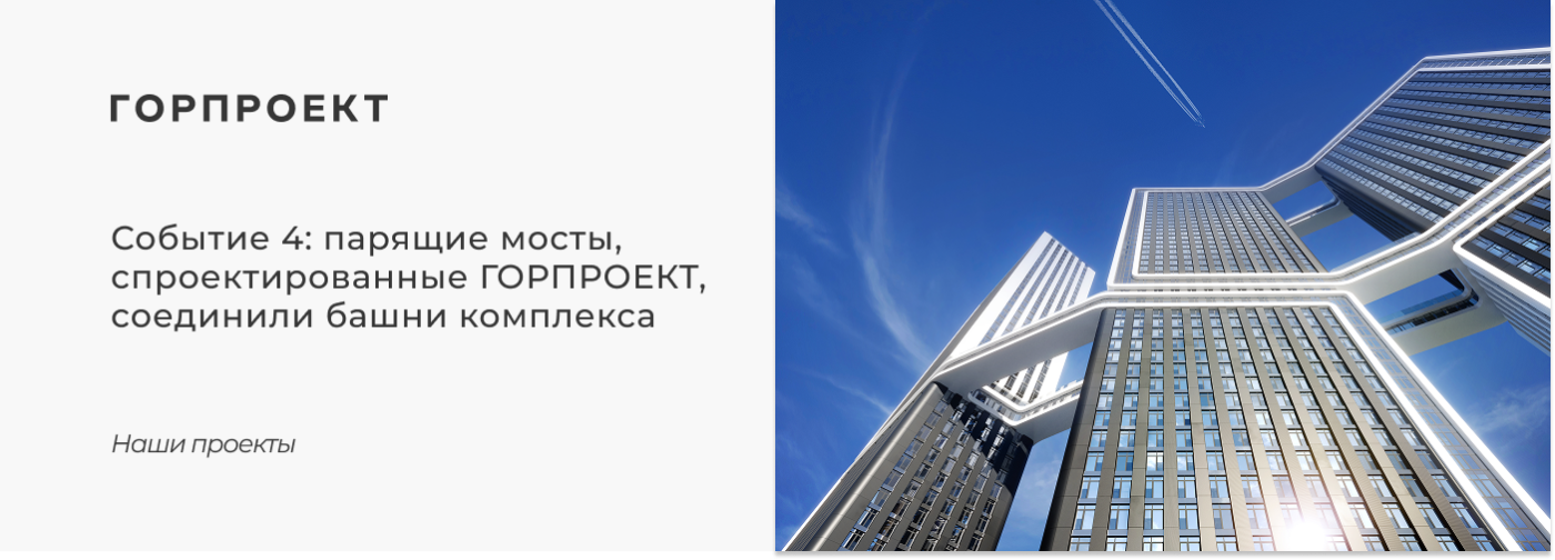 Событие 4: парящие мосты, спроектированные ГОРПРОЕКТ, соединили башни комплекса