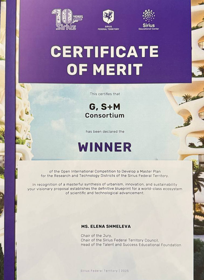 22 ноября состоялось заседание жюри Открытого международного конкурса на разработку мастер-плана научно-технологических районов федеральной территории «Сириус». Победителем признан консорциум G S+M под лидерством ГОРПРОЕКТ при участии Семрен и Монссон.