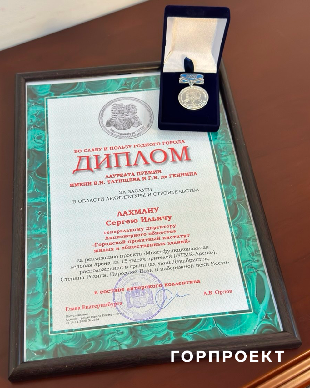 В номинации «За заслуги в области архитектуры и строительства» за реализацию проекта УГМК-Арена в составе авторского коллектива был награжден генеральный директор ГОРПРОЕКТ, Сергей Лахман.